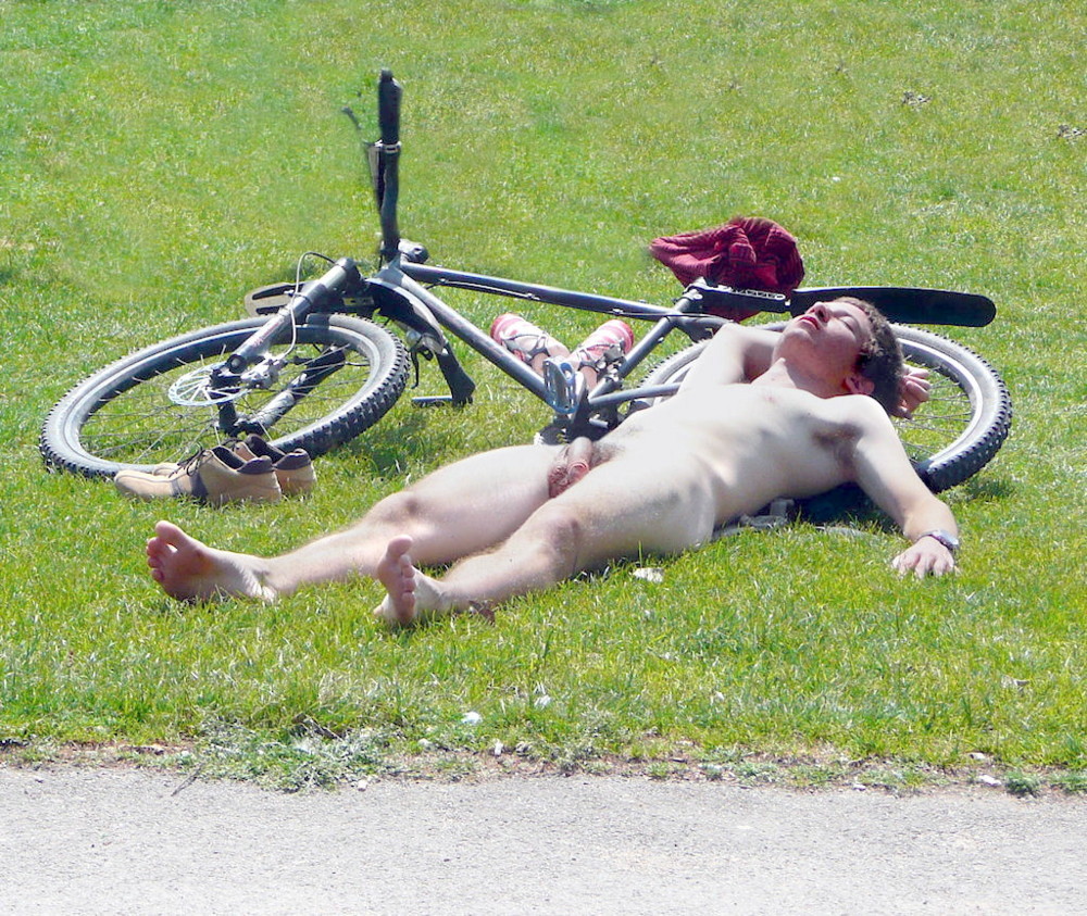 He’d exhausted himself on the WNBR. When he got to the finish line he lay down and was soon asleep. The other riders who finished later thought it was weird him lying there naked, but they got dressed, took photos and left. Later guys arriving saw an opportunity to embarrass the guy. First a shirt was taken, then his shoes and sox then his shorts.